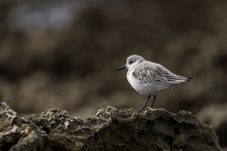 Sanderling Perched on Rocky Outcrop with Dark Background