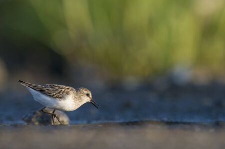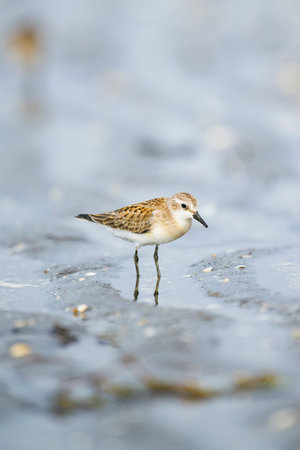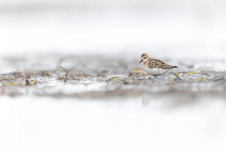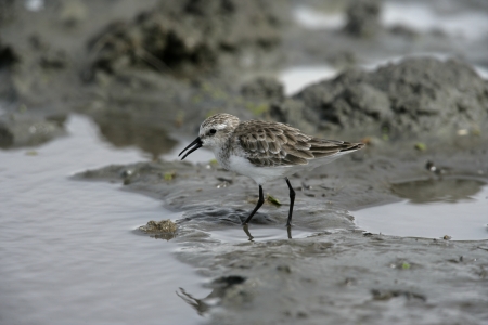 Little stint Sandpiper walking on a slimy beach
