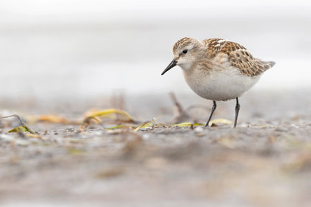 Little Sandpiper (Calidris alba) walking on the ground
