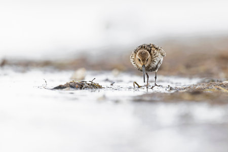 stilt walker or calidris alba bird at the coastline in holland