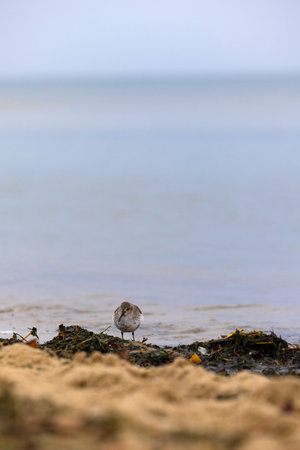 Sandpiper, a small shorebird on Nue Island, a small island of Mingan archipelago national park, in Cote Nord region of Quebec, Canada