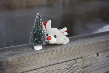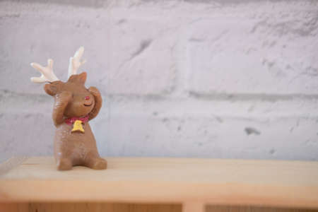 Funny toy Christmas reindee on wood table