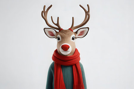 Christmas reindeer with red scarf isolated on a white background.