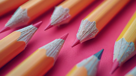 Colorful pencils on a pink background. Close-up.