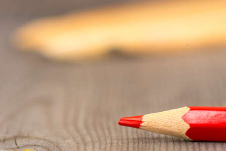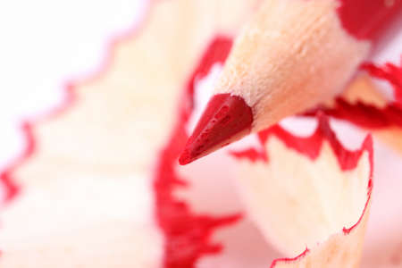 Macro shot of a red crayon and sharpenings