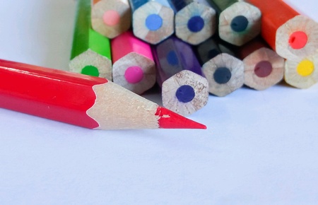 close up of color pencil head breaking