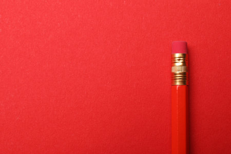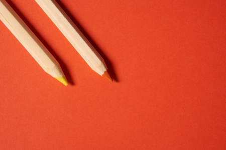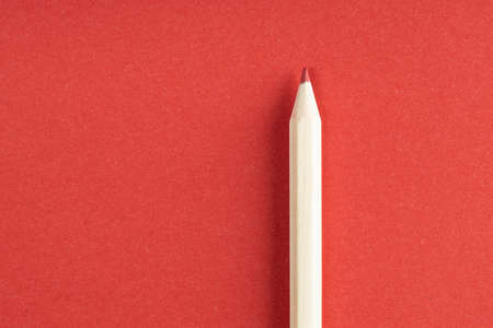 pencil on empty red sheet with copy space. Art, drawing, sketching, writing minimal concept.