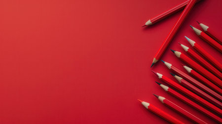 A vibrant red background is adorned with a collection of red pencils, arranged in a cascading pattern. The pencils are sharp and ready to be used, creating a visual metaphor for creativity and inspiration.