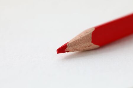 Red pencil on a white sheet of paper. Close-up.