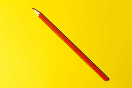 one red pencil on a bright yellow background. view from above. stationery.
