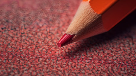 A detailed macro photograph of a red pencil tip showcasing the intricate textures of wood and graphite, perfect for themes of art, education, and creativity.
