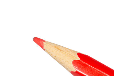 close up of tip of red pencil isolated on white