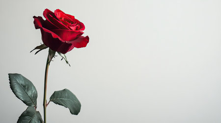 Side view of a red rose with a bright, clear background, offering plenty of space on the left side for text or branding.