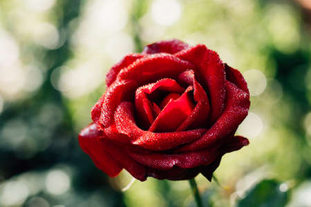 Beautiful red rose with dew drops close-up macro photography