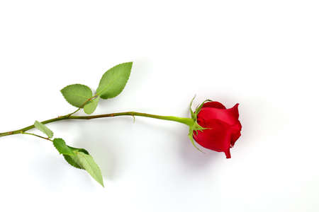Fresh red rose isolated on a white background, with its striking color and fine petal details standing out in the minimalist setting.