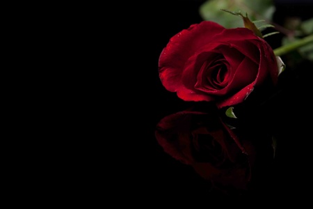 beautiful red rose with reflection on black base