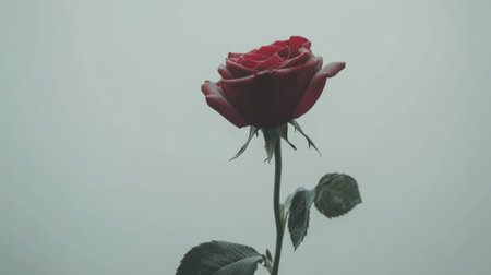 A stunning single red rose stands majestically against a light backdrop, representing beauty and elegance in floral design. Perfect for various uses.