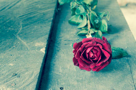 Red rose on wooden background, valentine's day concept.