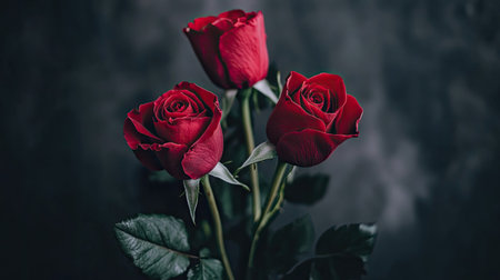 A stunning arrangement of fresh red roses against a soft gray background. Perfect for themes of love, romance, and elegance in any design.