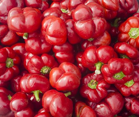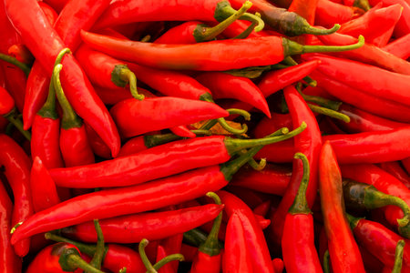 many red hot chili pepper on blue background