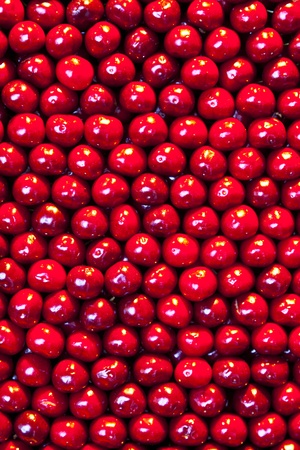 Vertical, full frame composition (9:16) showing a sharp, centered collection of small, deep red seas