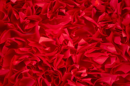 Red paper texture background. Macro of curved sheets of paper. Soft focus