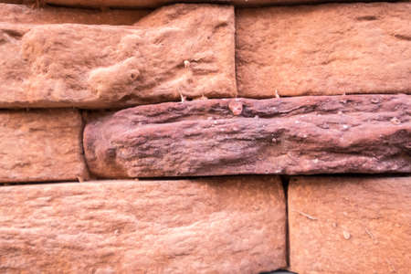 Red rough brick texture closeup horizontal background, old detailed rough grunge textured, copy space background,vintage cracked backstein brickwork cut pattern.