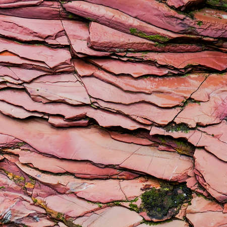 Photo texture of red stones with lichens and moss - background