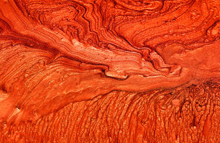 Abstract background of red and orange marble texture. Close-up.
