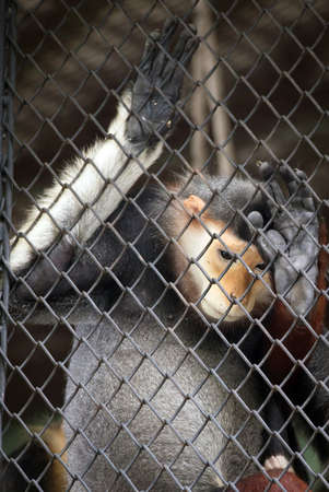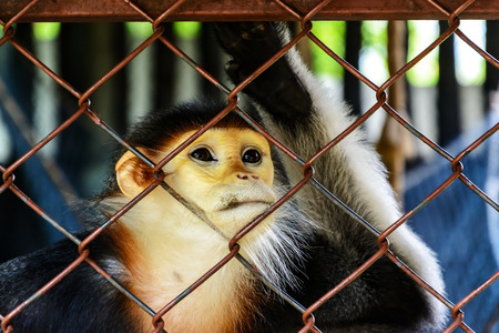 Lemur (Pygathrix nemaeus) is trapped in the cage.