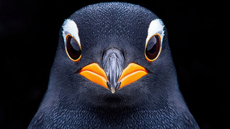 Discover the stunning features of this black bird with a striking orange beak and captivating eyes. A perfect shot for bird enthusiasts and nature photography lovers.