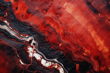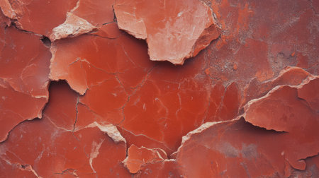 Fragmented Rosso Levanto marble with dominant red tones and exposed cracks lying on a red surface. A high-detail decorative texture ideal for design backgrounds.
