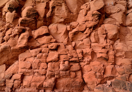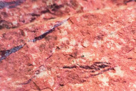 Surface with a texture of red Martian stone. Designer background for interiors. Stone surface of a red rock.