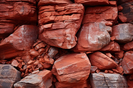 A captivating collection of vibrant crimson and orange rocks, each with its own unique character and geological features, creating a visually striking and earthy display