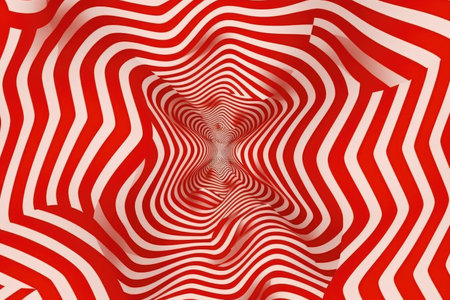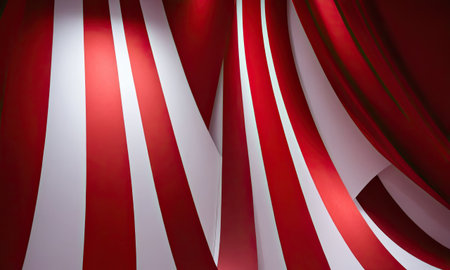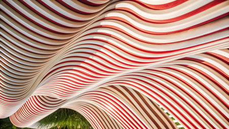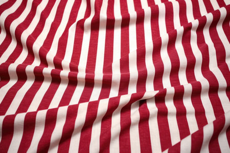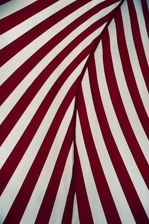 Close-up of a red and white striped fabric, showcasing a dynamic, curved pattern. The texture and design create an interesting visual effect.