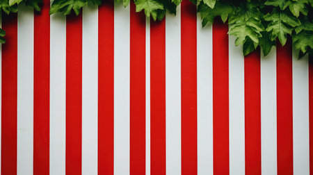 Red and white vertical stripes background pattern. An abstract colorful striped texture or backdrop with copy space.