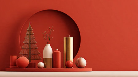 Stylish holiday mockup with controlled red-and-gold minimalist accents.