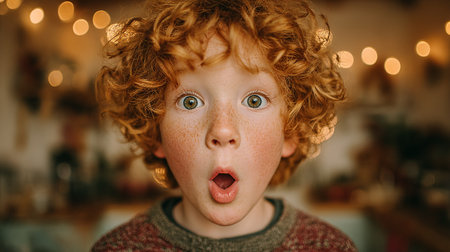 Surprised Child. A young child with curly hair showing a surprised expression indoors.