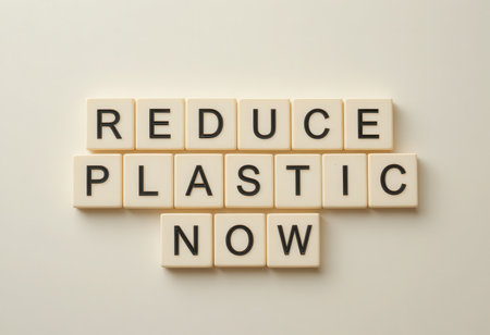 This image features letters arranged to convey a powerful message about reducing plastic waste. It emphasizes the importance of immediate action for environmental sustainability.