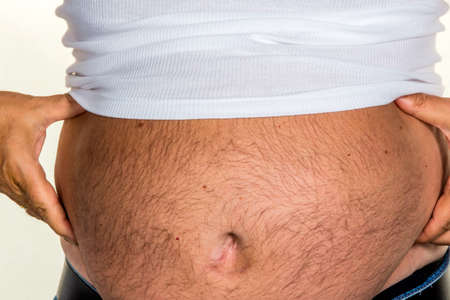 man with overweight big fat belly chubby