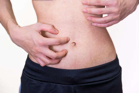 Hands makes fold of skin on stomach