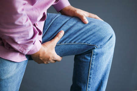 Close up on man suffering knee joint pain
