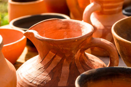 various handmade clay pot, pot, casserole and jug utensils