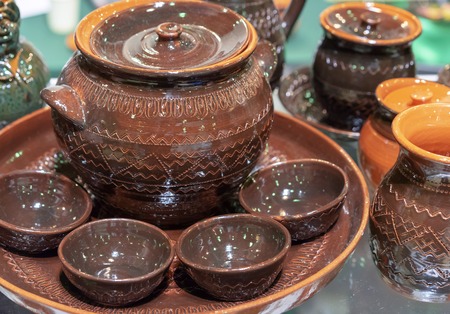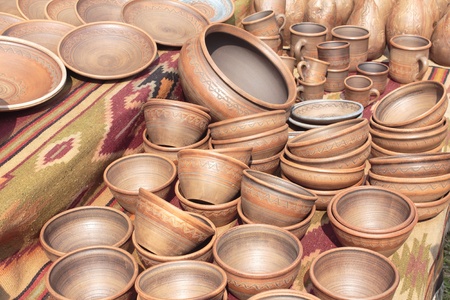 Traditional homemade ceramic pots on traditional crafts fair.