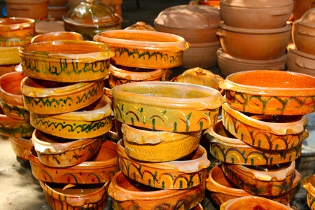 Clay pottery for sale in a market in Marrakesh, Morocco