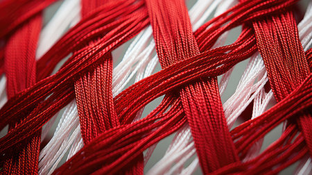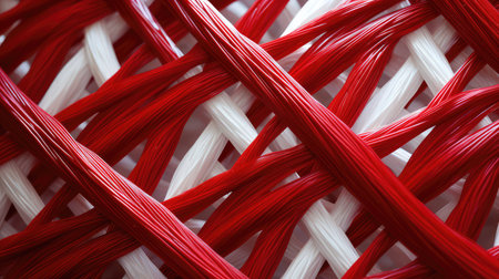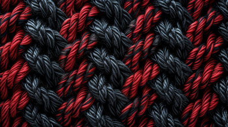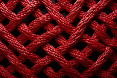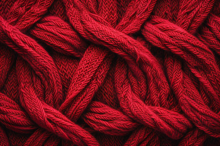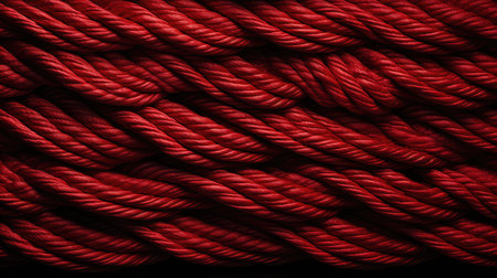 Close-up of intertwined red ropes showing detailed texture and fibers. That the image is generated using AI.