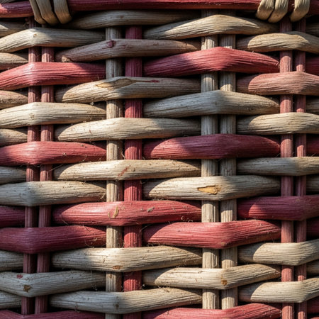 A captivating weaving pattern showcasing a blend of brown and red shades. This intricate design provides inspiration for home decor and textile artistry.