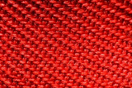 Synthetic fiber photos There is a space between the fibers. Tidy weave, red fiber, high magnification, super macro