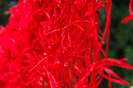 Knot of red rope for lovely couple wish with selective focus