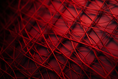 Vibrant crimson threads entwine, creating a hypnotizing tapestry of intricate design and texture, beckoning the viewer into a world of depth and complexity